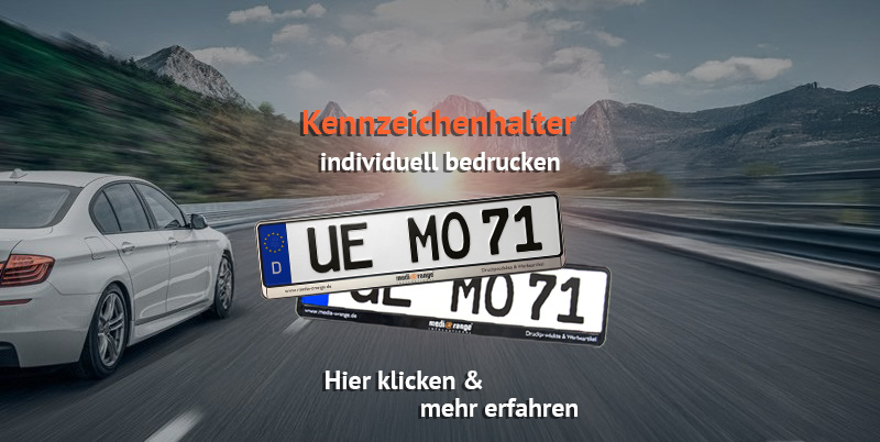 - Kennzeichenhalter bedrucken – Für PKW, LKW, Traktoren oder Motorräder. In Doming-, erhabener oder Standardausführung.
